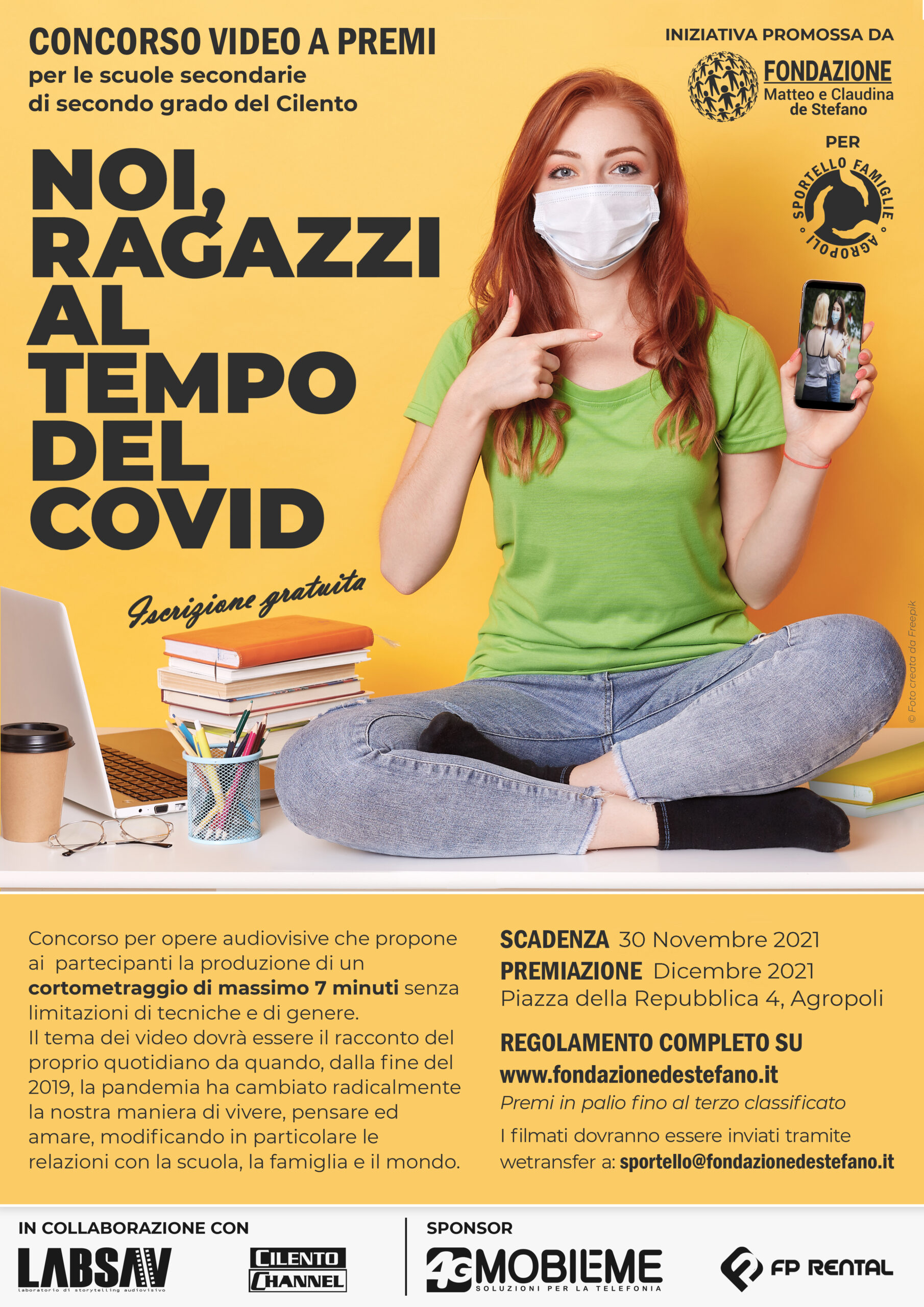 Dedicato agli alunni frequentanti le scuole secondarie di secondo grado del Cilento, “Noi, ragazzi al tempo del Covid” è un concorso a premi per opere audiovisive, della durata massima di 7 minuti, autoprodotte dai ragazzi. Possono partecipare sia singoli studenti che gruppi.